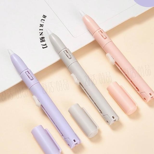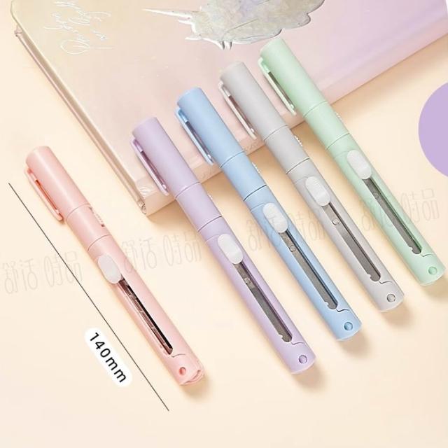 摺疊剪刀 剪刀 筆刀 刻刀 莫蘭迪按壓筆刀 切割筆刀 雕刻刀 手帳筆刀 筆型刀【舒活時品】
