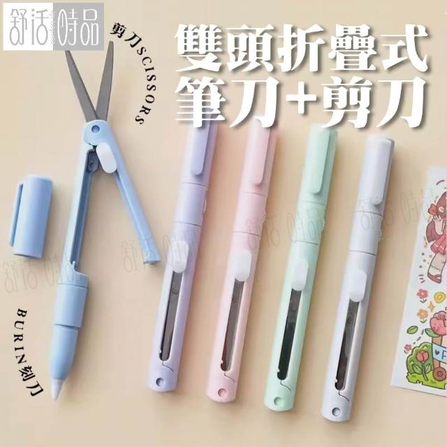 摺疊剪刀 剪刀 筆刀 刻刀 莫蘭迪按壓筆刀 切割筆刀 雕刻刀 手帳筆刀 筆型刀【舒活時品】