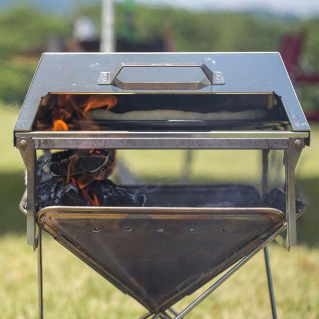 - 可使用柴火及木炭來使用烤爐料理