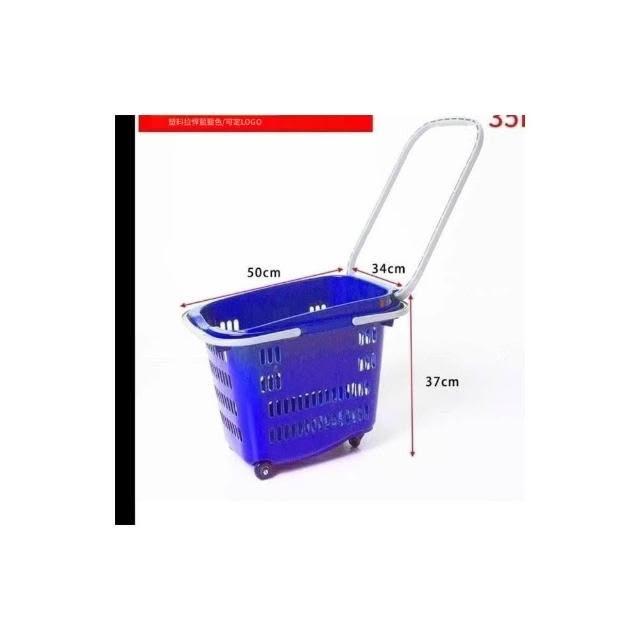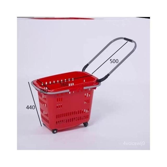購物籃超市購物籃手提手拉籃帶輪買菜購物車揀貨筐加厚商場拖車籃