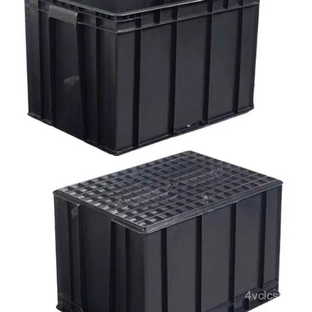 防靜電週轉箱 黑色eu塑料筐 長方形帶蓋分隔收納筐 物流箱定製零件盒