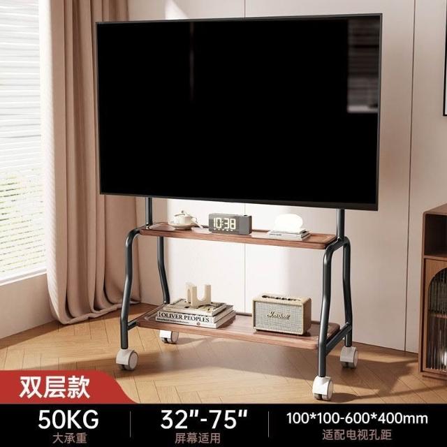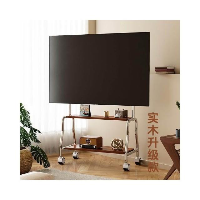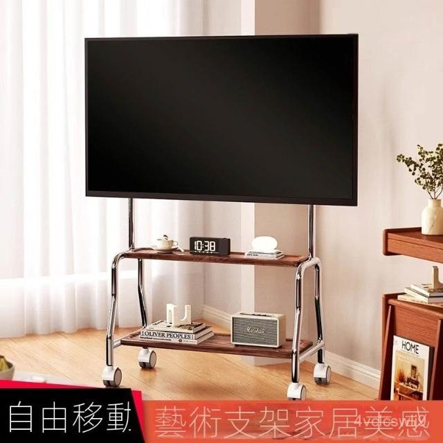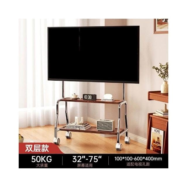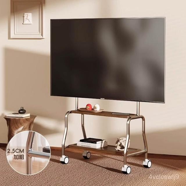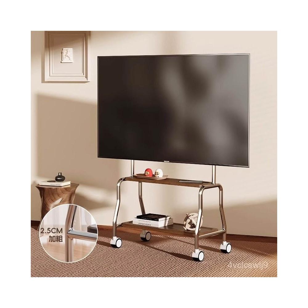 貝石電視移動藝術推車不銹鋼落地支架雙層收納75英寸帶輪推車