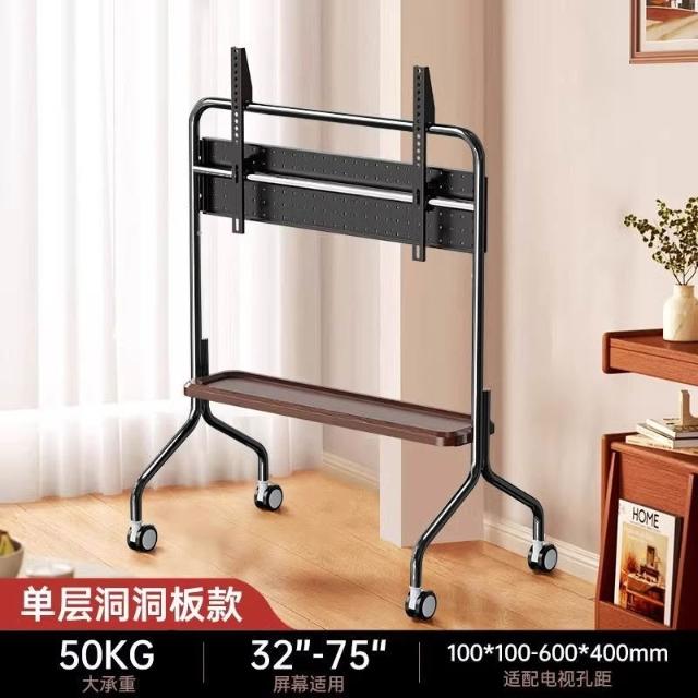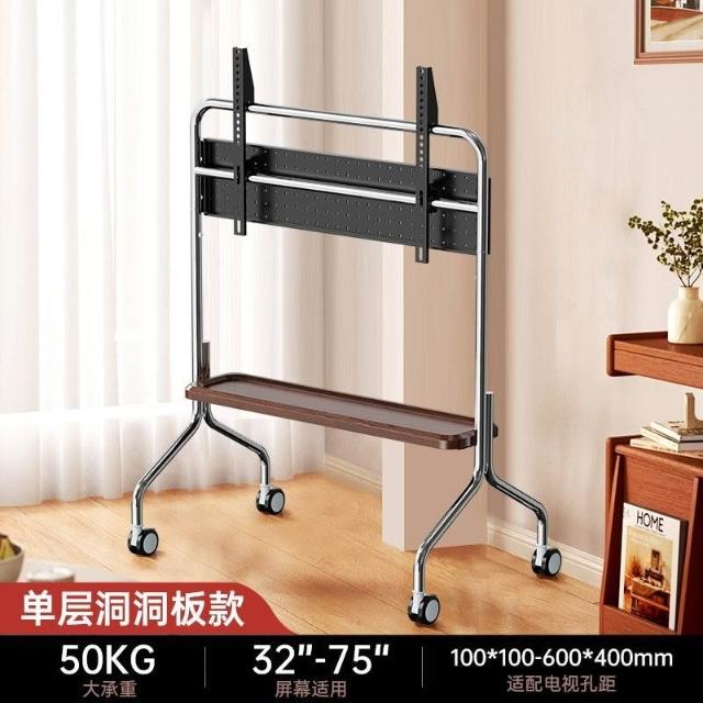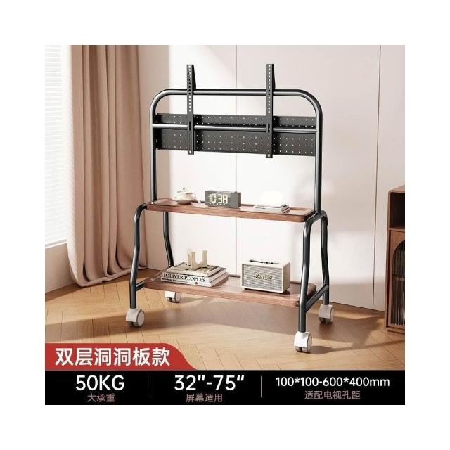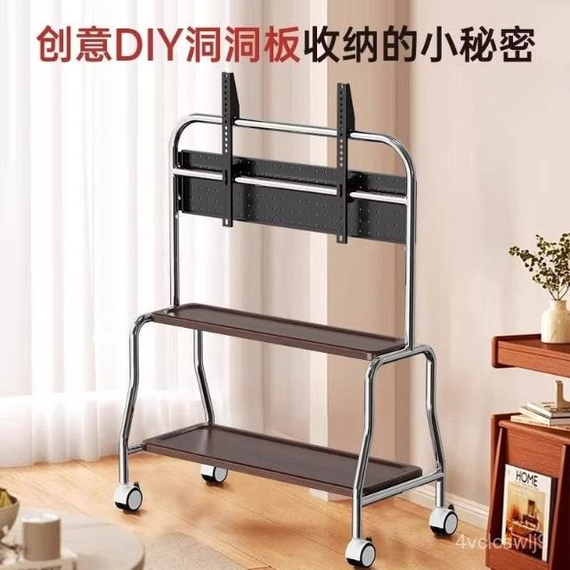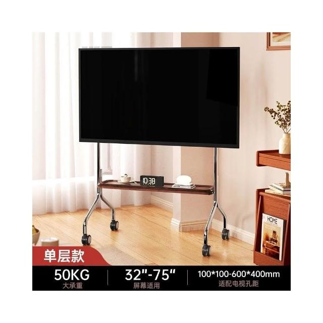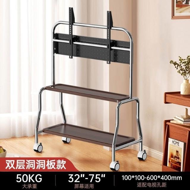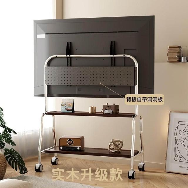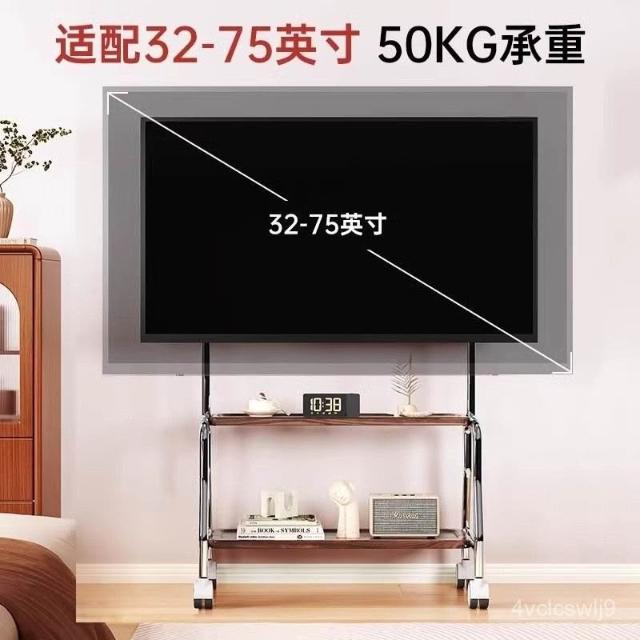 貝石電視移動藝術推車不銹鋼落地支架雙層收納75英寸帶輪推車