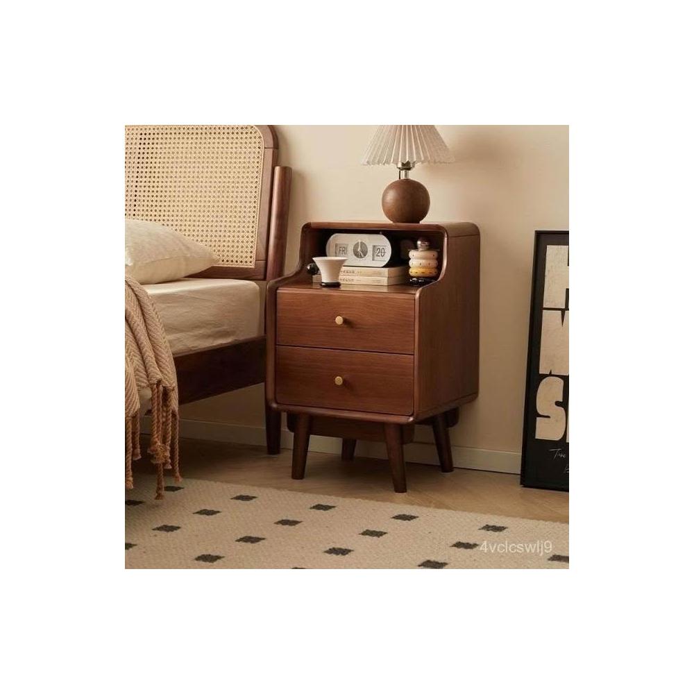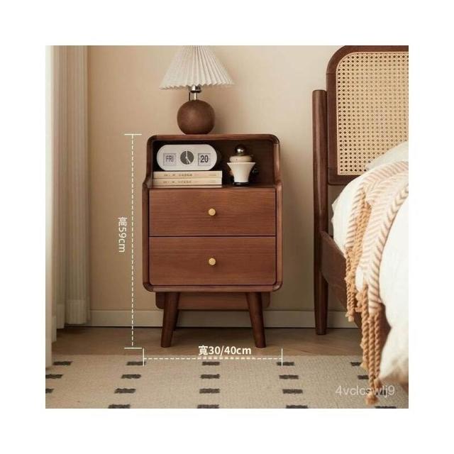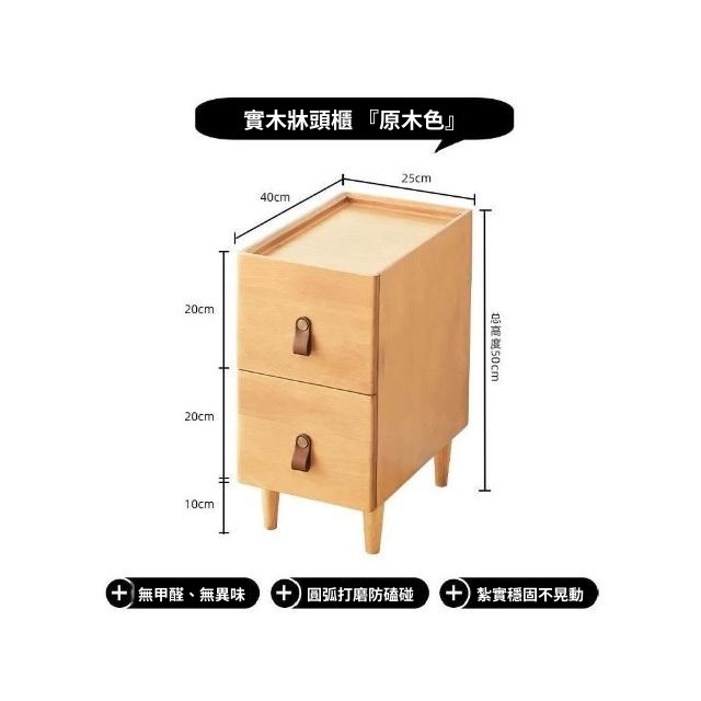 北歐實木床頭櫃 日式簡約床邊櫃 窄身床頭櫃 雙抽儲物 臥室小型收納櫃 床頭櫃實木家用臥室床邊櫃簡約小型儲物櫃床頭收納櫃