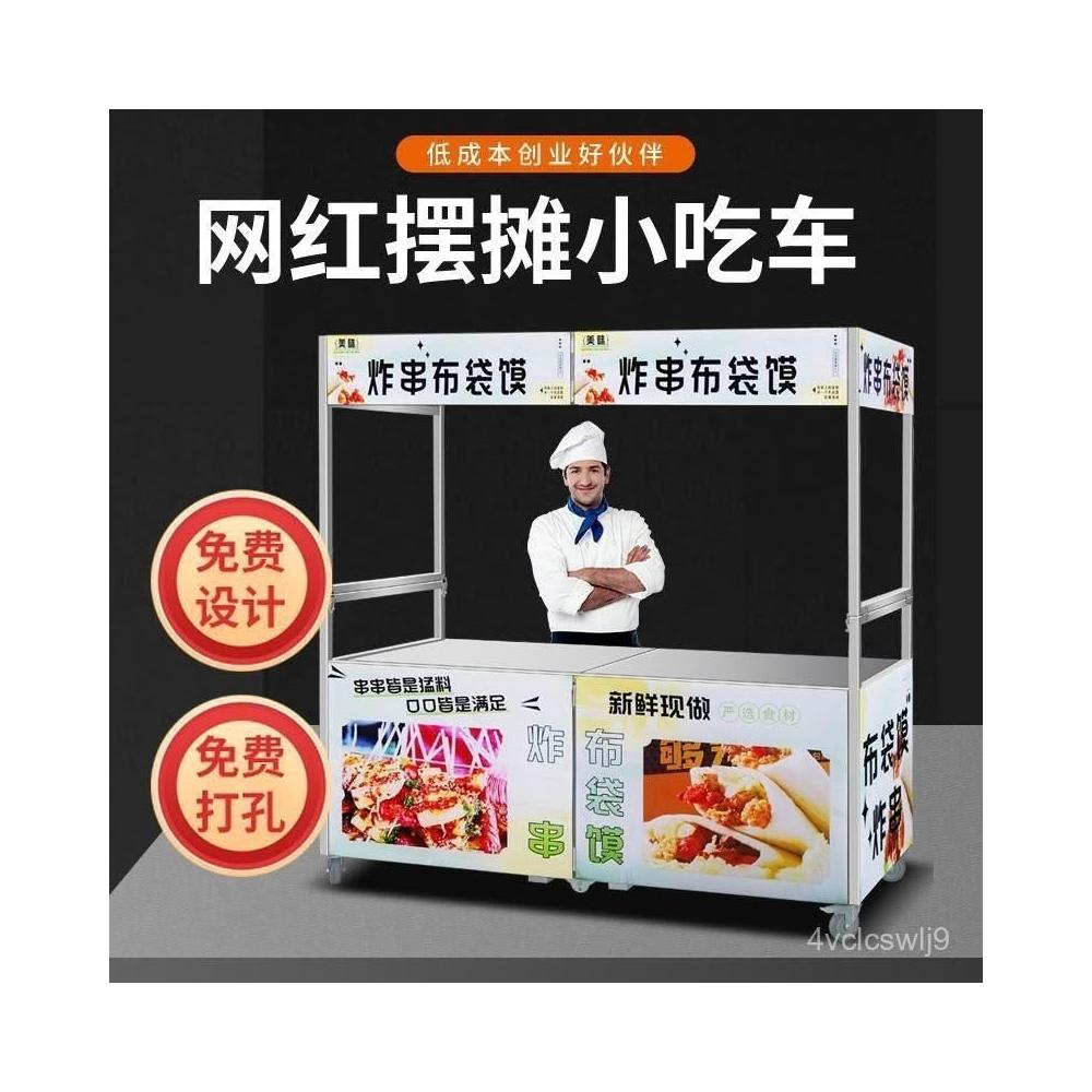 商用折疊擺攤車不銹鋼手推燈箱廣告車網紅夜市多功能移動小喫餐車