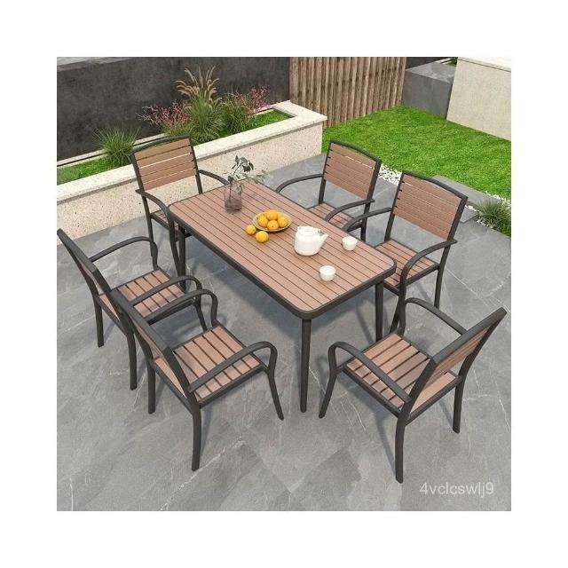 戶外防曬 防腐桌椅 休閒露營 咖啡廳 奶茶店 室外陽臺庭院塑木全套桌椅 戶外餐桌 桌子 戶外桌子