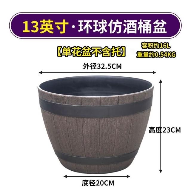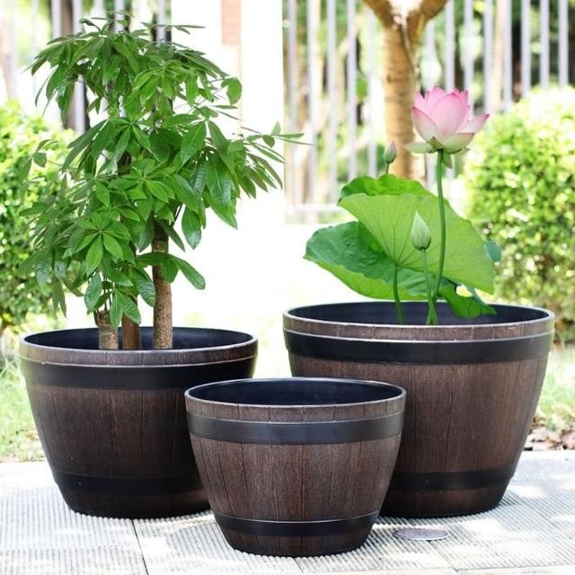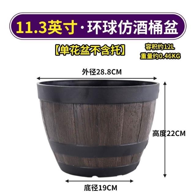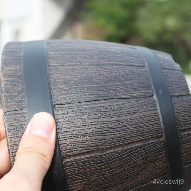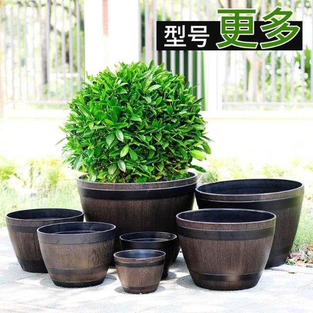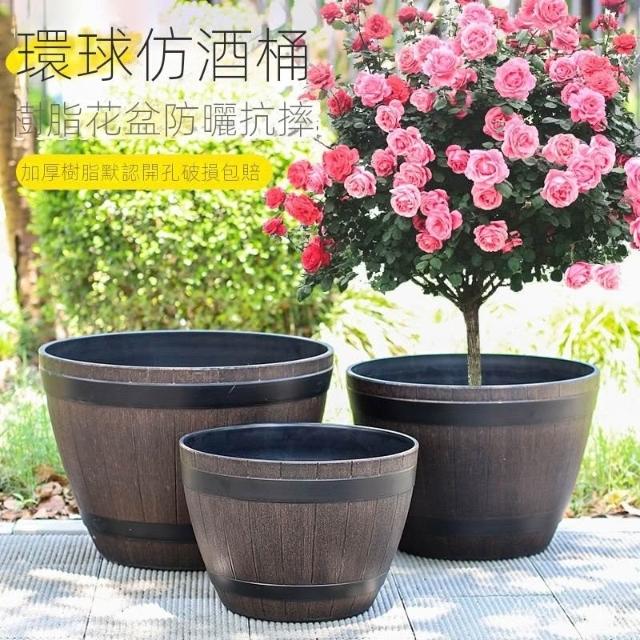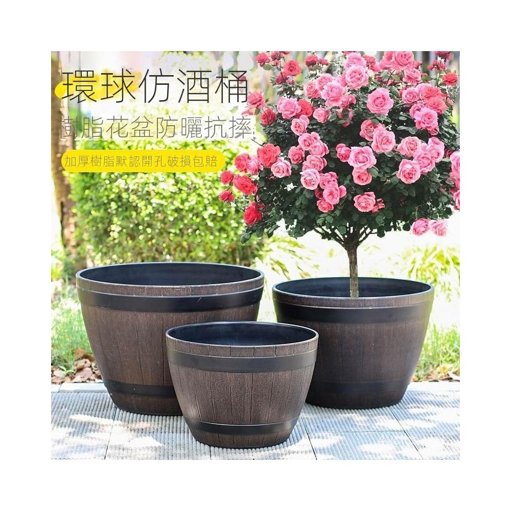 花盆新款仿木桶樹脂花盆復古風啤酒桶盆栽種植盆落地盆景花盆