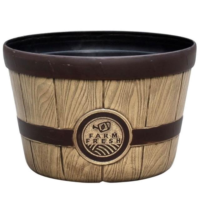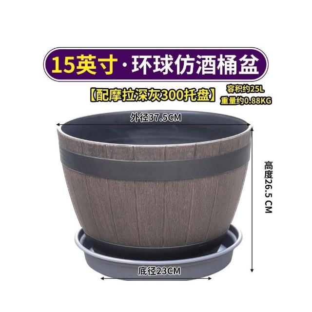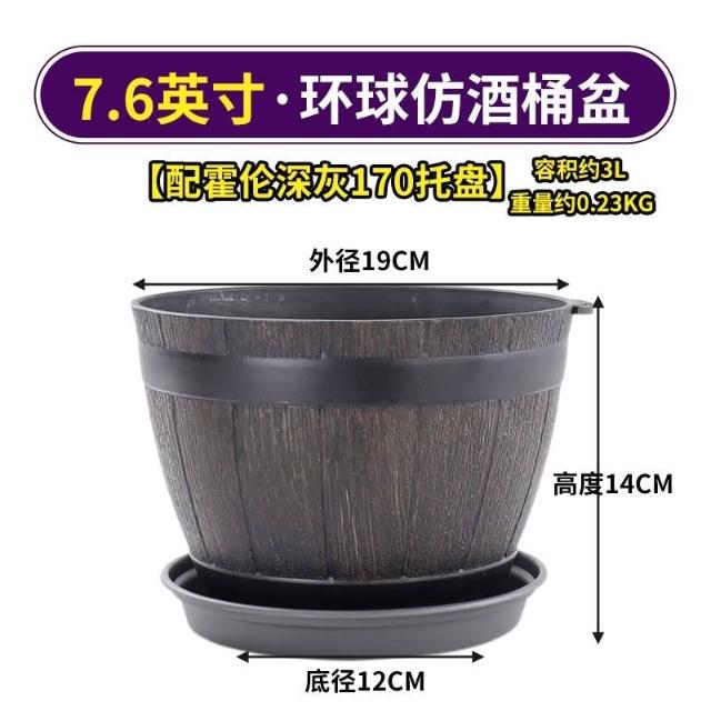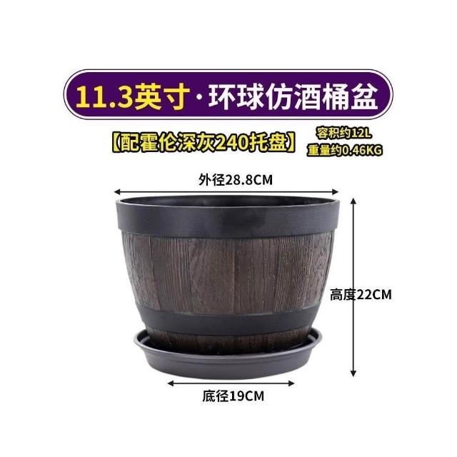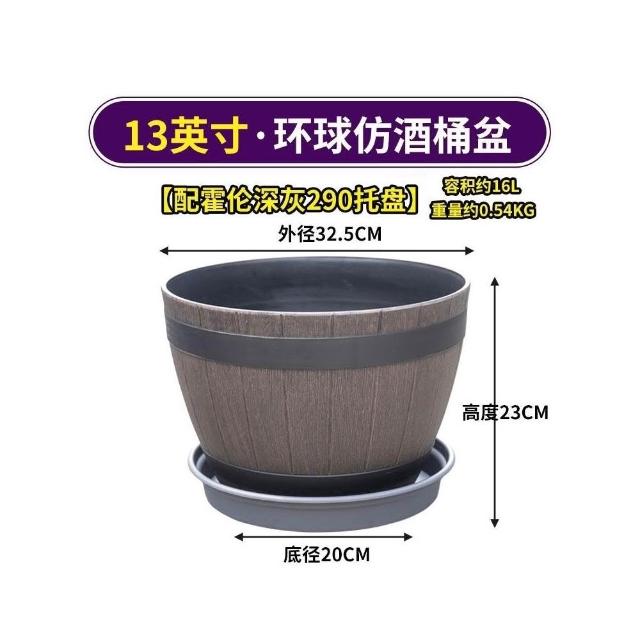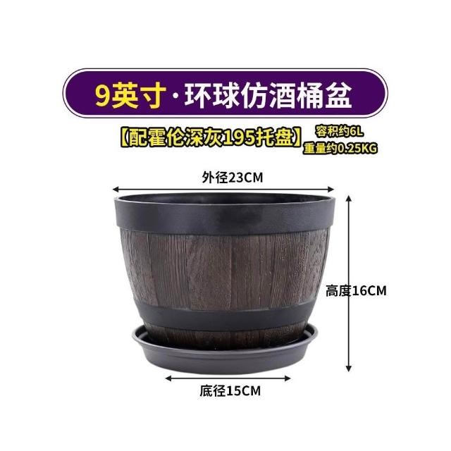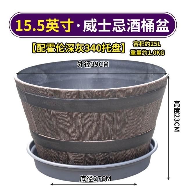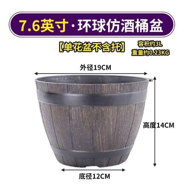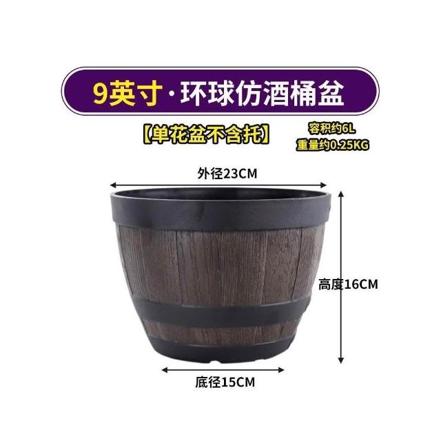 花盆新款仿木桶樹脂花盆復古風啤酒桶盆栽種植盆落地盆景花盆