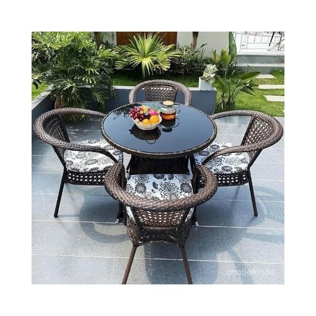 戶外陽臺休閒桌椅庭院藤椅三件套室外露臺騰椅藤編椅子小茶幾組閤