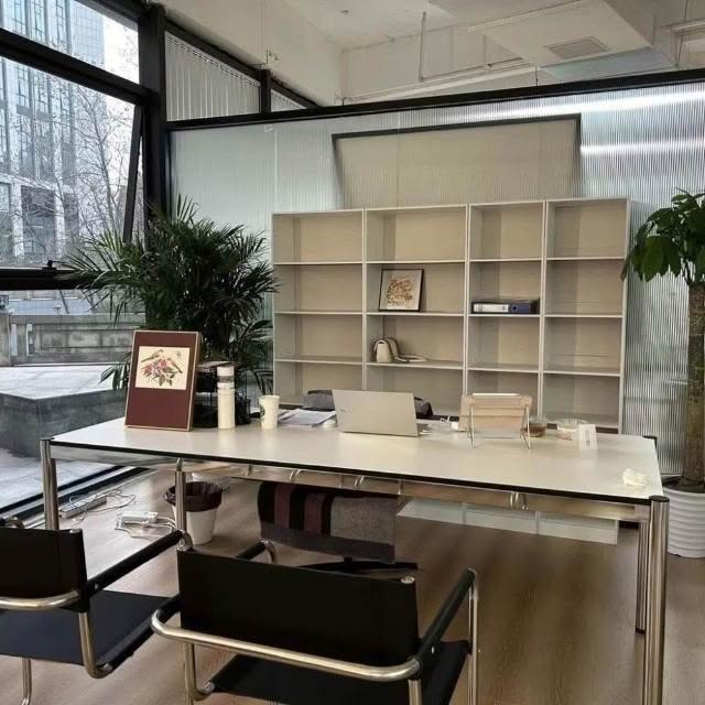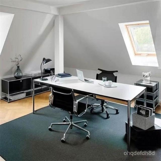 中古風辦公書桌電腦桌寫字臺ins包豪斯長方形會議桌不銹鋼桌腿 長桌 方桌