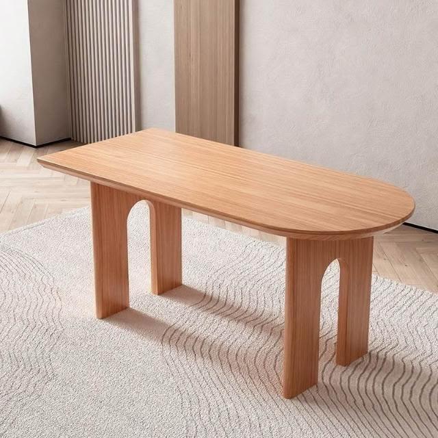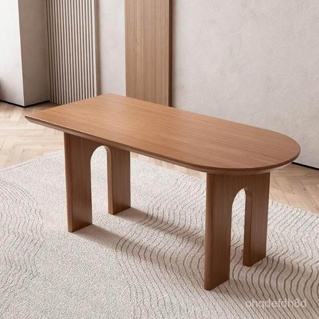 北歐實木島臺餐桌傢用小戶型靠墻半圓形飯桌簡約客廳長書桌辦公桌 實木桌 餐桌 長桌