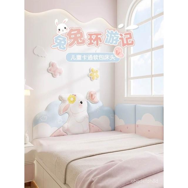 榻榻米軟包墻圍兒童房可愛兔子床頭闆靠背墊軟包防撞墻貼自粘