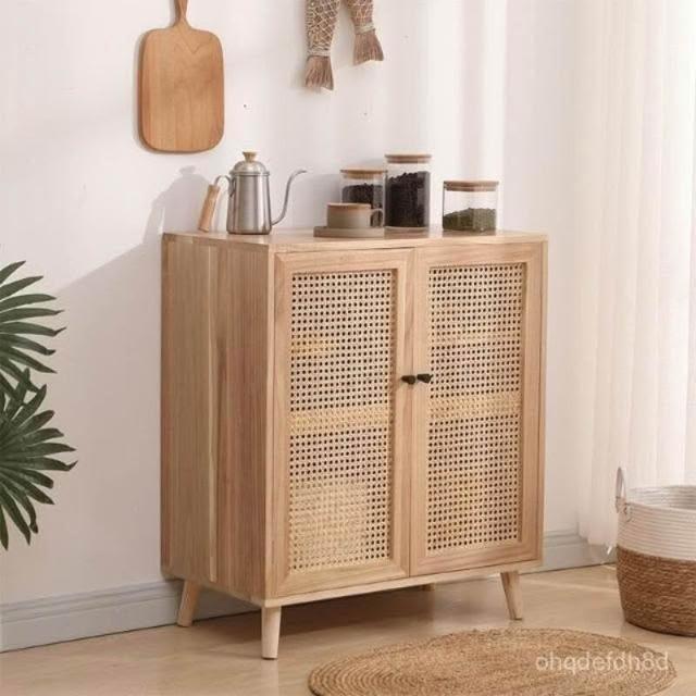 日式 藤編收納櫃 餐廳櫃 客廳收納櫃 侘寂風櫃子耐重置物櫃 餐邊櫃 茶水櫃 藤編櫃 侘寂風櫃子