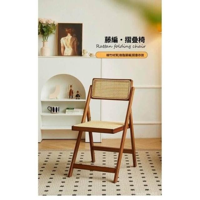 椅子靠背餐椅藤編北歐椅子家用折疊折疊椅實木藤椅凳子民宿休閒 餐椅 藤椅 折疊椅 實木椅