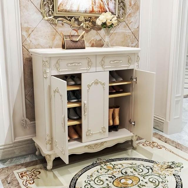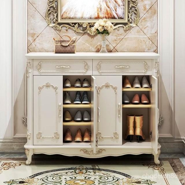 歐式鞋櫃客廳門口鞋櫃白色實木大容量門廳櫃玄關櫃簡約傢用儲物櫃 置物架
