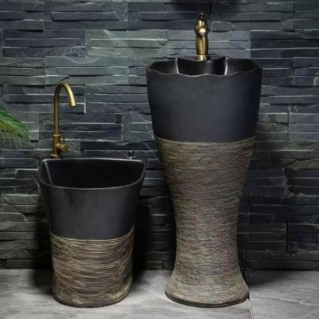 戶外洗手盆庭院陶瓷花園室外洗手池陽臺小戶型洗手臺立柱式洗臉盆