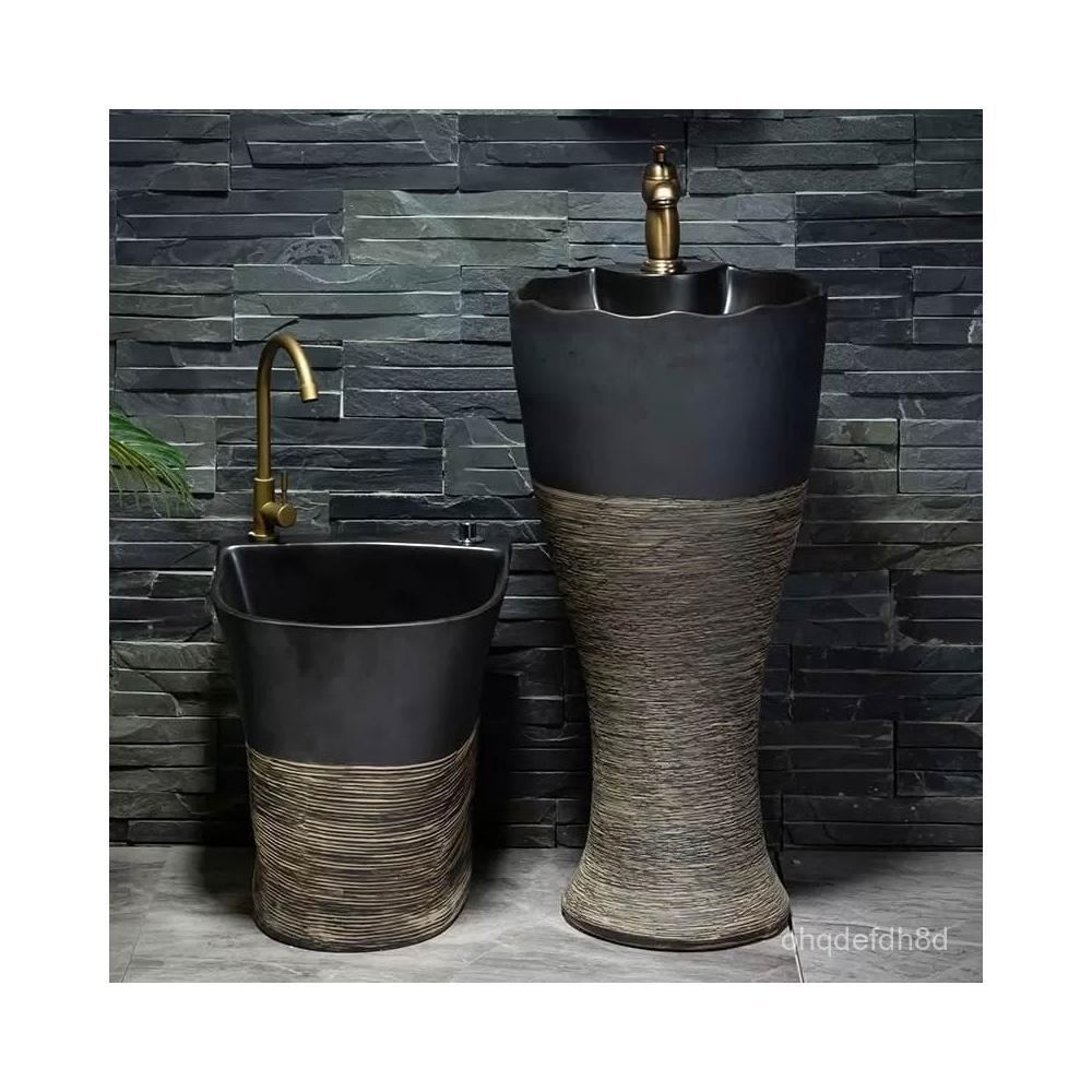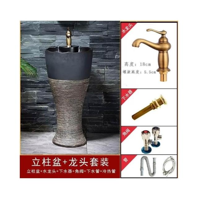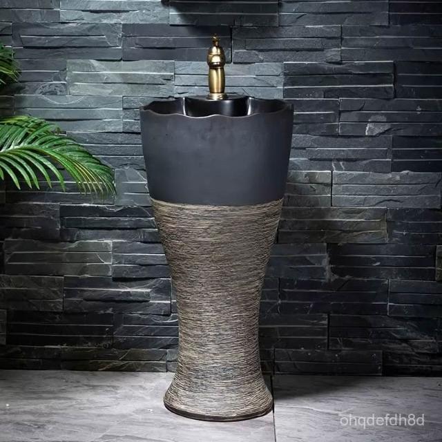 戶外洗手盆庭院陶瓷花園室外洗手池陽臺小戶型洗手臺立柱式洗臉盆