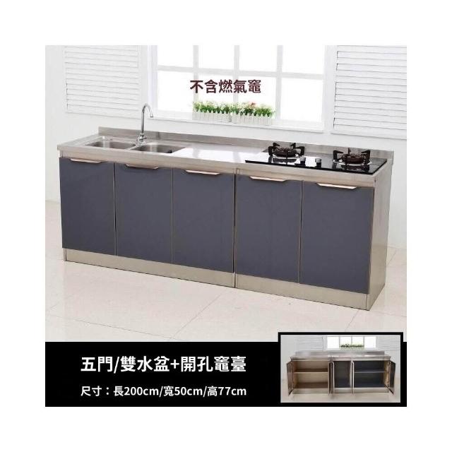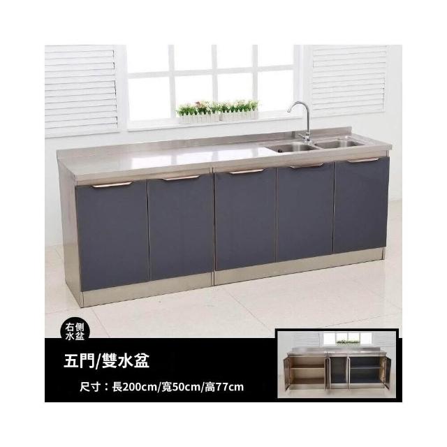 2米不銹鋼廚房櫥柜灶臺柜一體柜組合家用儲物碗柜整體簡易租房用