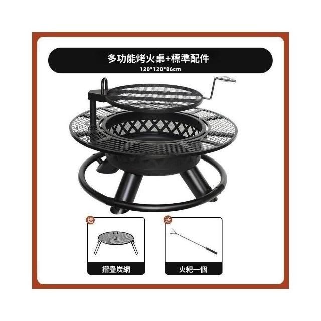 戶外燒柴取暖爐烤火爐取暖器圍爐煮茶多功能燒烤爐一體燒烤桌庭院