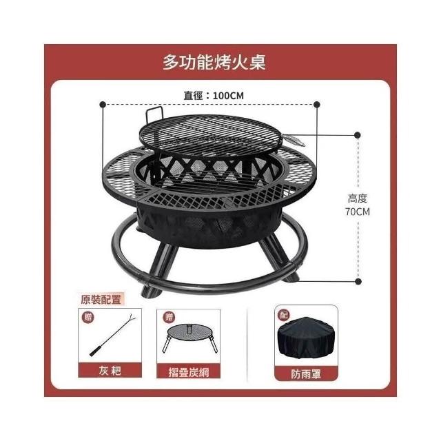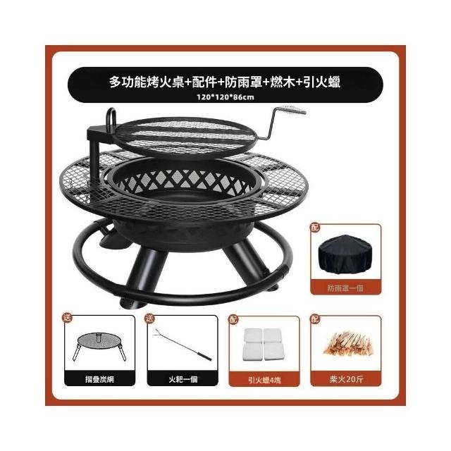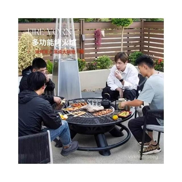 戶外燒柴取暖爐烤火爐取暖器圍爐煮茶多功能燒烤爐一體燒烤桌庭院