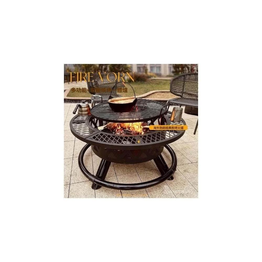 戶外燒柴取暖爐烤火爐取暖器圍爐煮茶多功能燒烤爐一體燒烤桌庭院