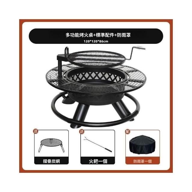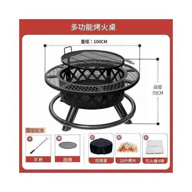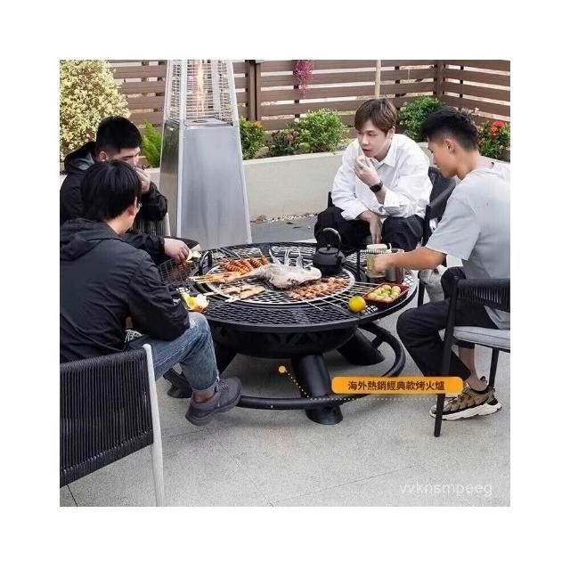 戶外燒柴取暖爐烤火爐取暖器圍爐煮茶多功能燒烤爐一體燒烤桌庭院