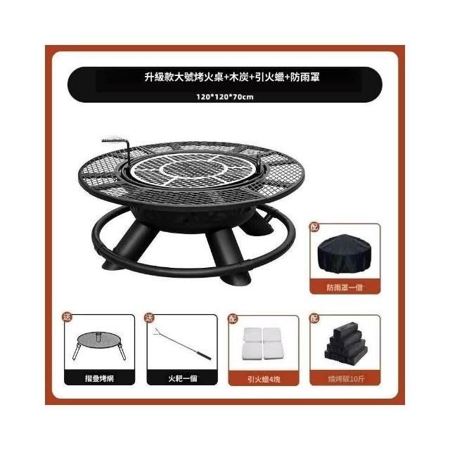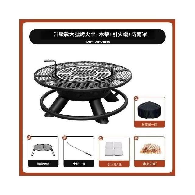 戶外燒柴取暖爐烤火爐取暖器圍爐煮茶多功能燒烤爐一體燒烤桌庭院