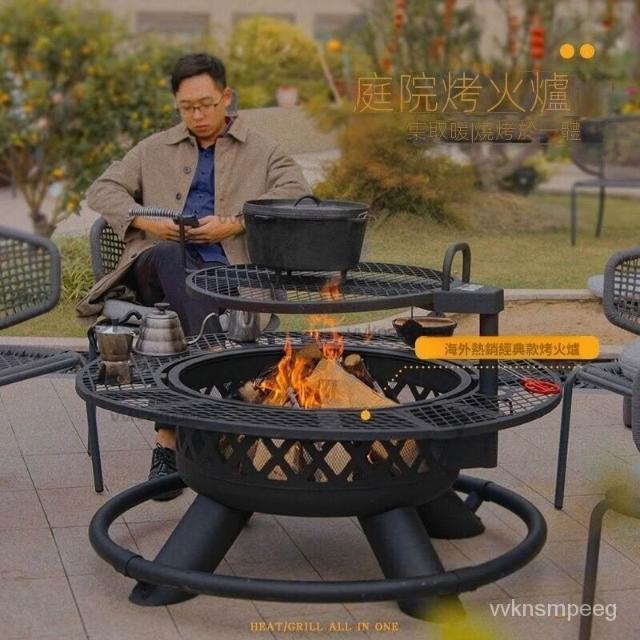 燒烤架傢用取暖爐柴火烤火爐別墅庭院篝火圍桌火盆木炭戶外燒烤爐 柴火爐 燒烤架 篝火架