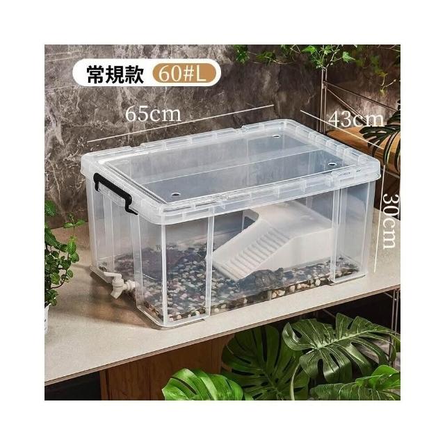 透明帶蓋烏龜缸 鱷龜飼養箱 草龜專用缸收納箱 可造景帶排水生態魚缸
