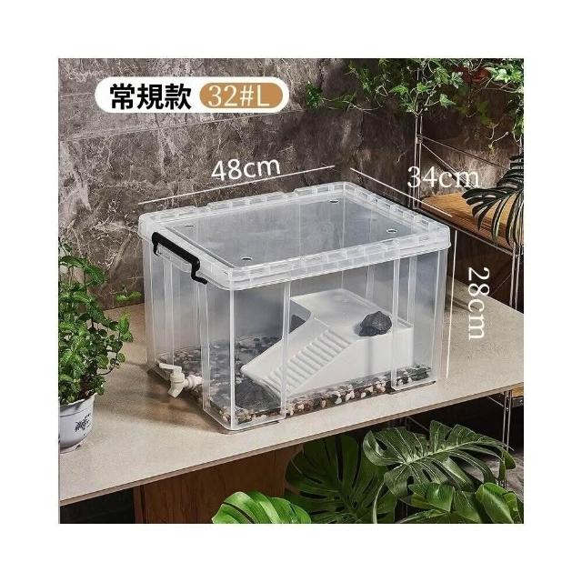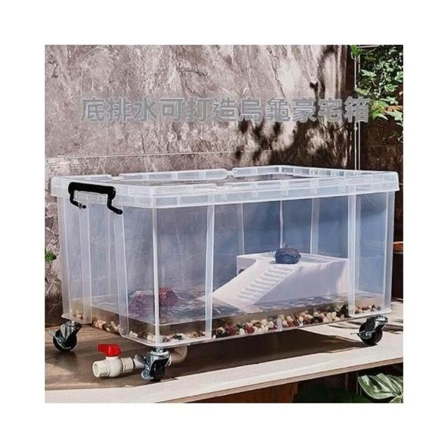 透明帶蓋烏龜缸 鱷龜飼養箱 草龜專用缸收納箱 可造景帶排水生態魚缸