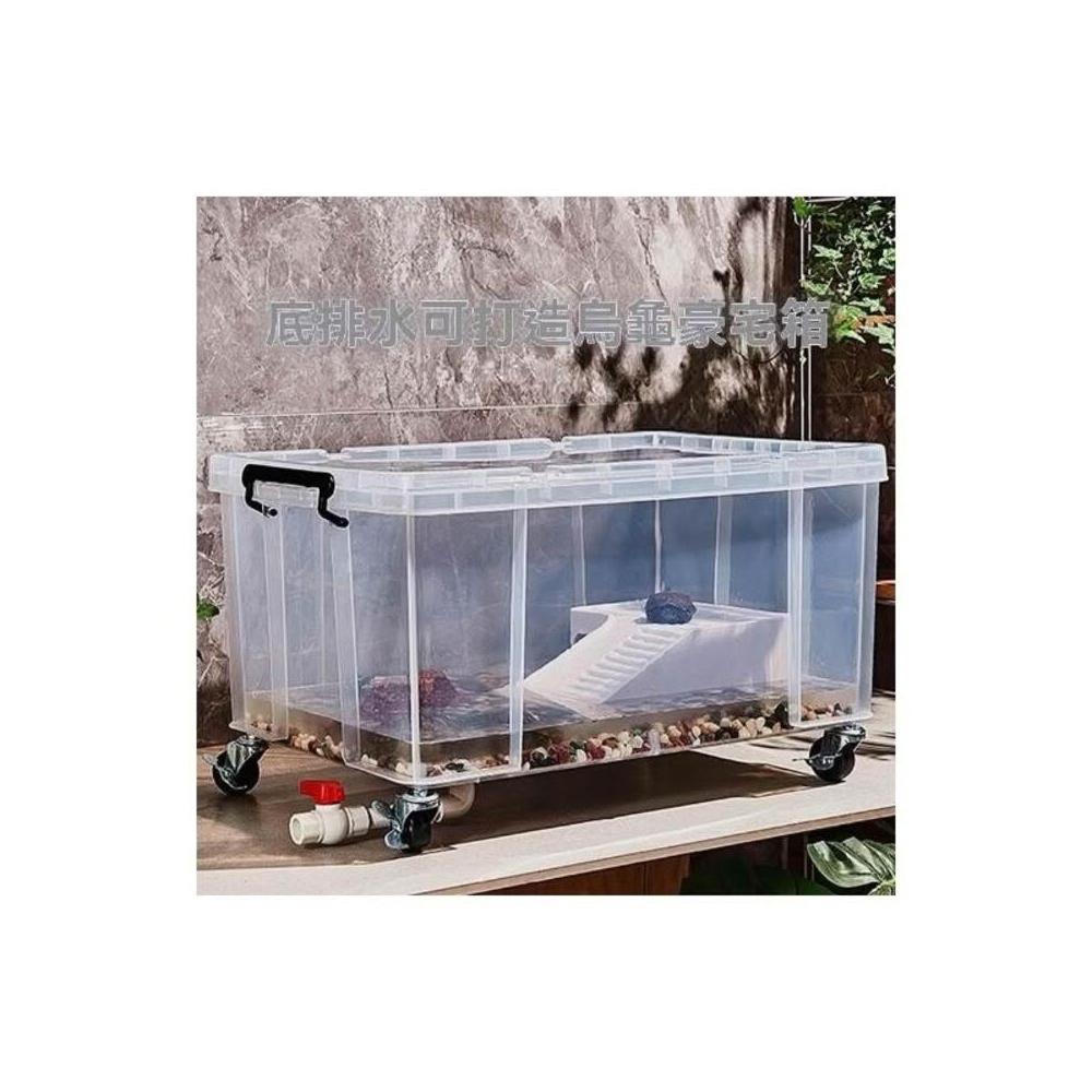 透明帶蓋烏龜缸 鱷龜飼養箱 草龜專用缸收納箱 可造景帶排水生態魚缸