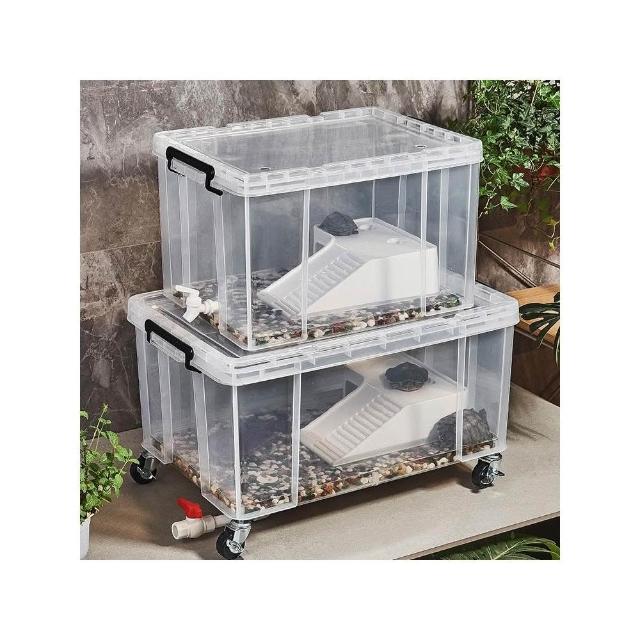 透明帶蓋烏龜缸 鱷龜飼養箱 草龜專用缸收納箱 可造景帶排水生態魚缸
