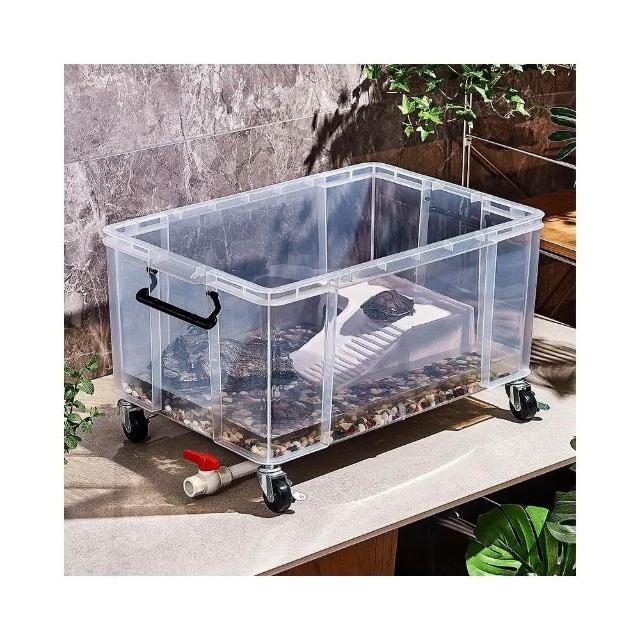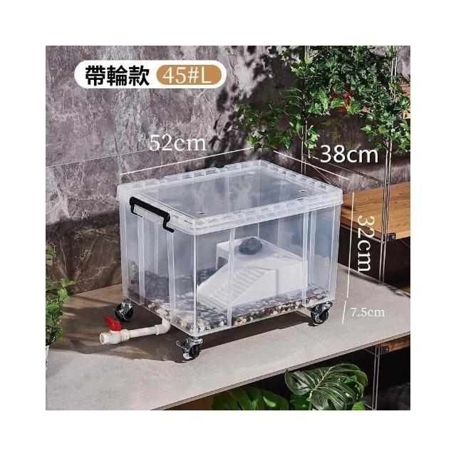 透明帶蓋烏龜缸 鱷龜飼養箱 草龜專用缸收納箱 可造景帶排水生態魚缸