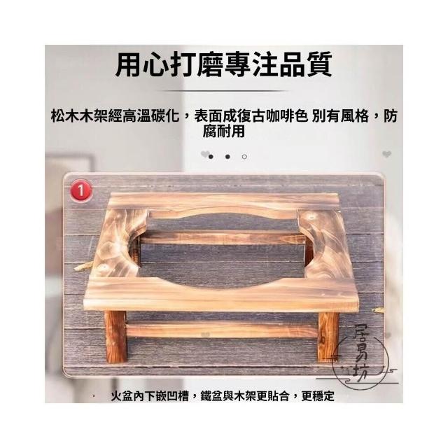 實木烤火盆 實木烤火桌 網紅圍爐煮茶桌 冬日取暖桌 戶外燒烤桌 庭院烤火盆