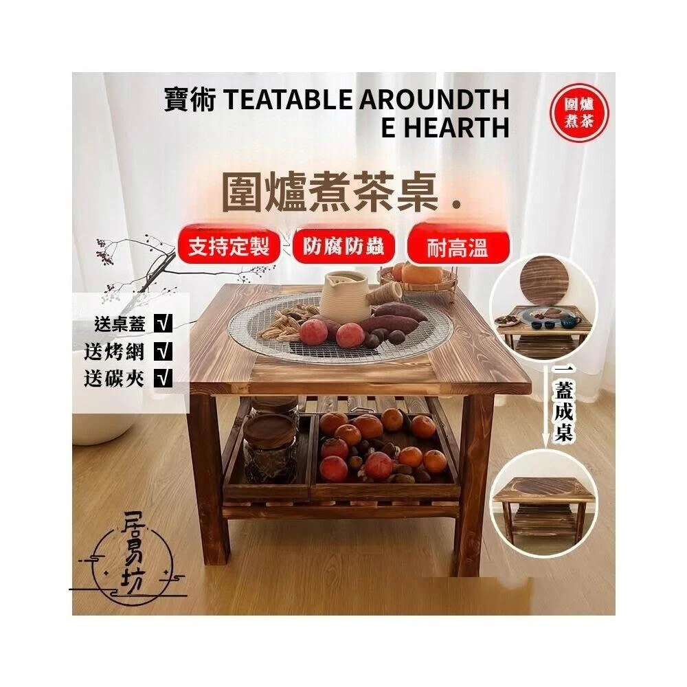實木烤火盆 實木烤火桌 網紅圍爐煮茶桌 冬日取暖桌 戶外燒烤桌 庭院烤火盆