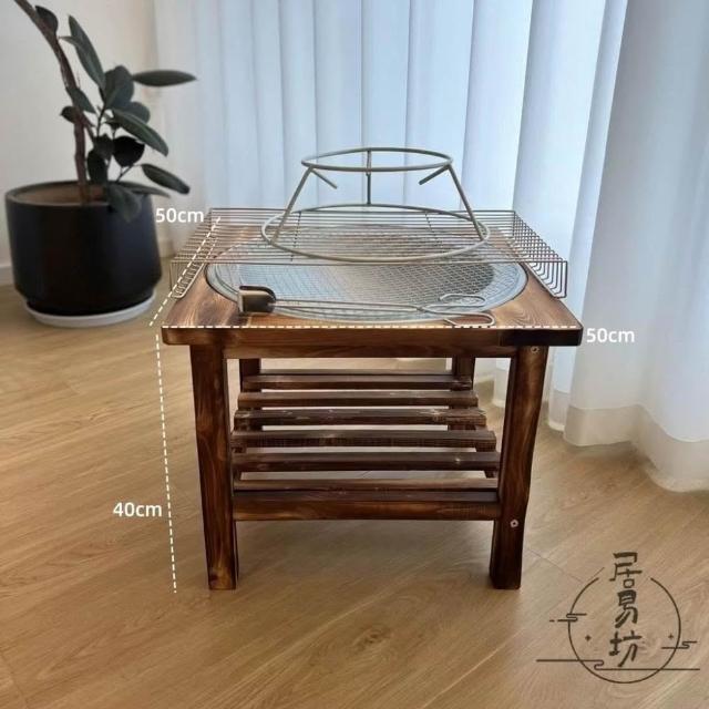 實木烤火盆 實木烤火桌 網紅圍爐煮茶桌 冬日取暖桌 戶外燒烤桌 庭院烤火盆
