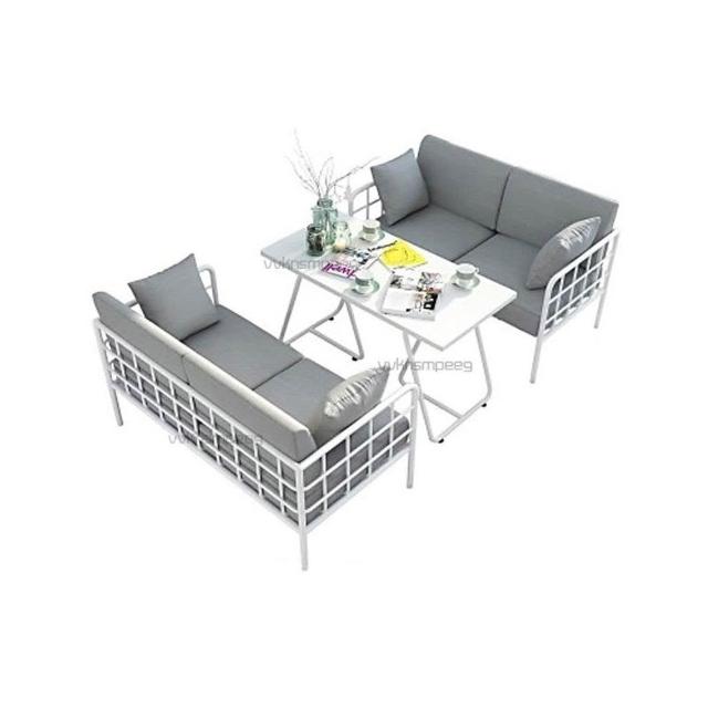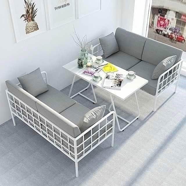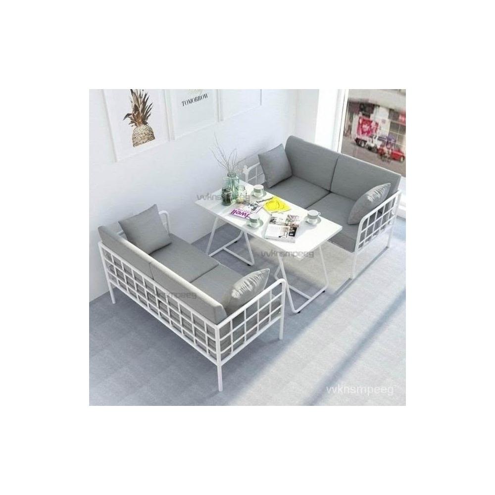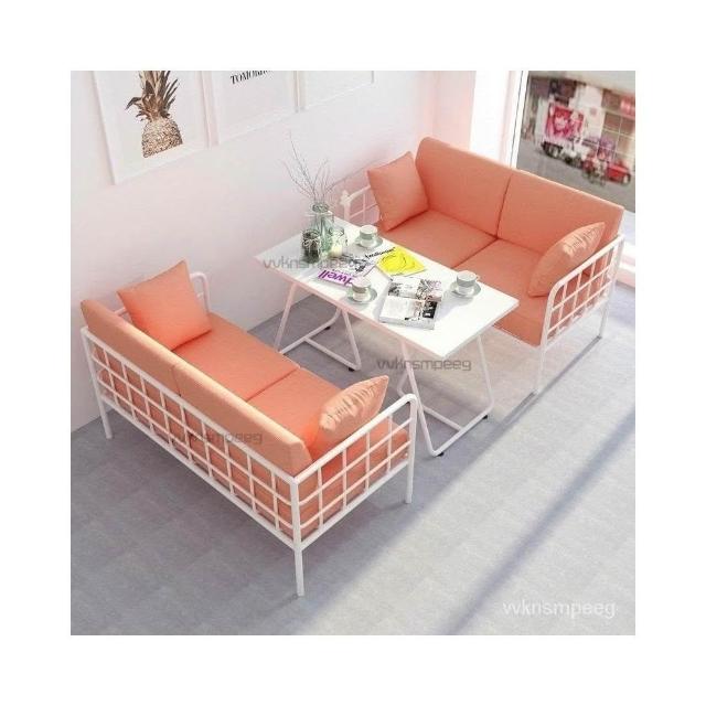 北歐ins鐵藝簡約店鋪公寓小沙發白色現代咖啡廳餐桌椅組閤服裝店