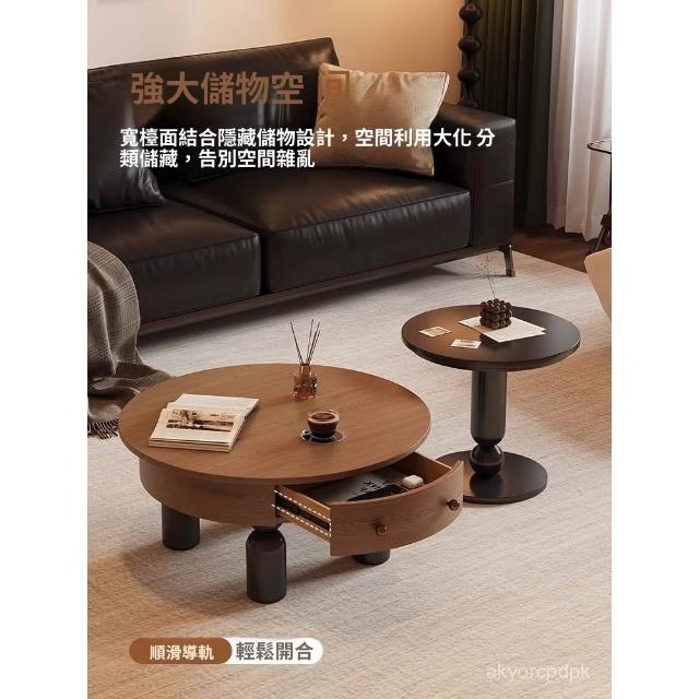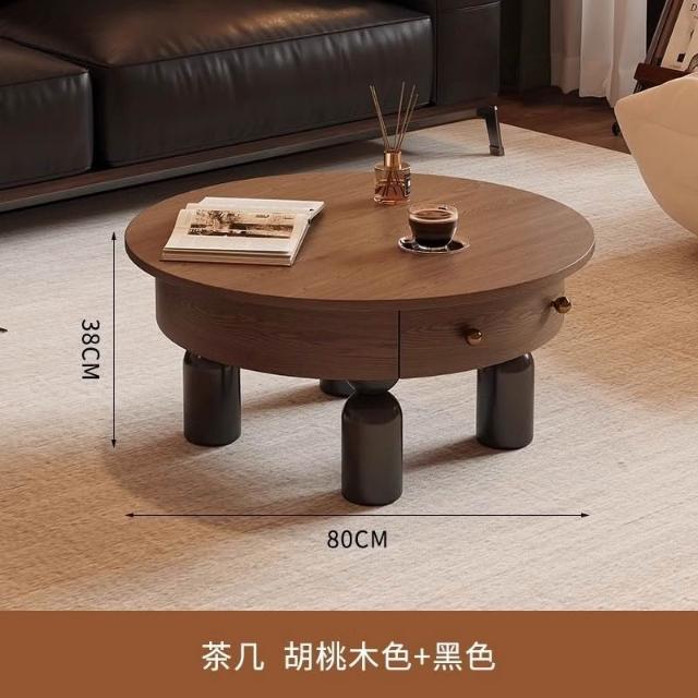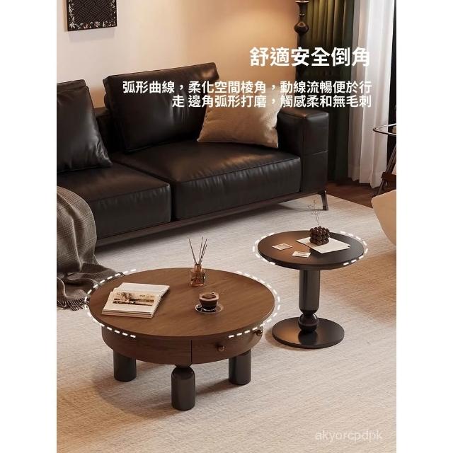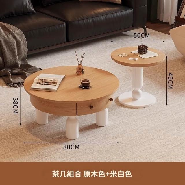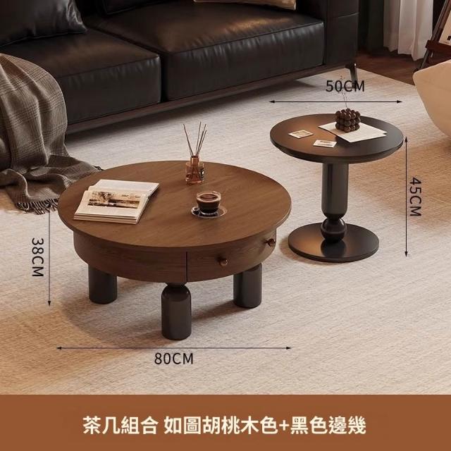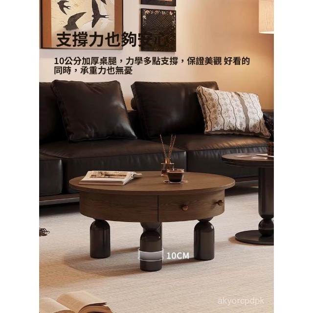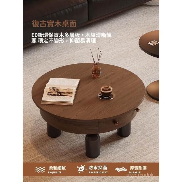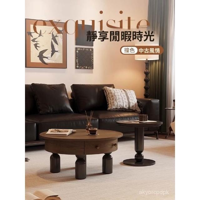 中古侘寂風實木茶幾客廳家用小戶型圓形茶幾組閤設計師款複古茶幾