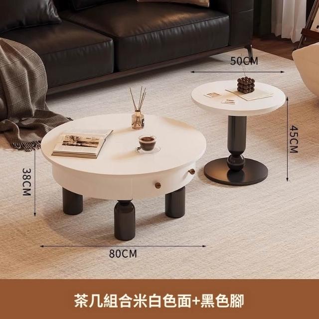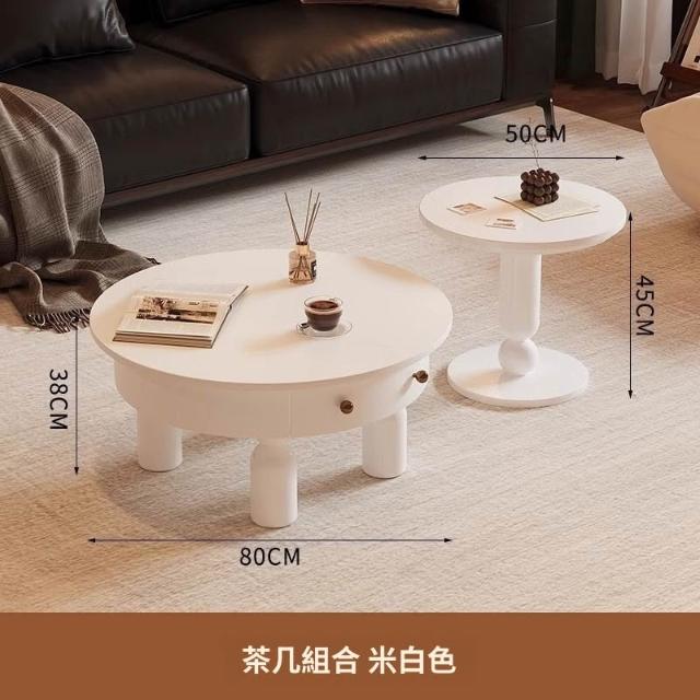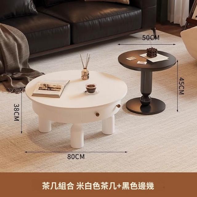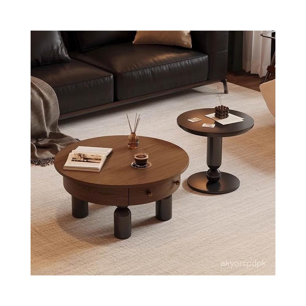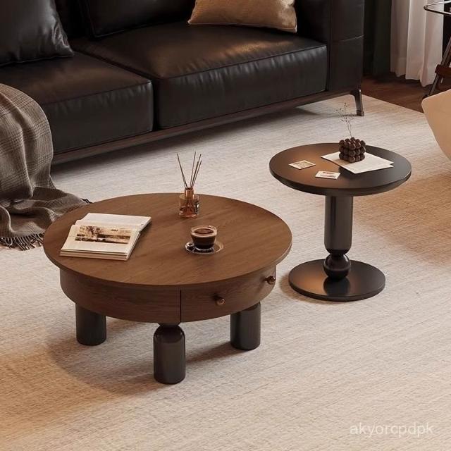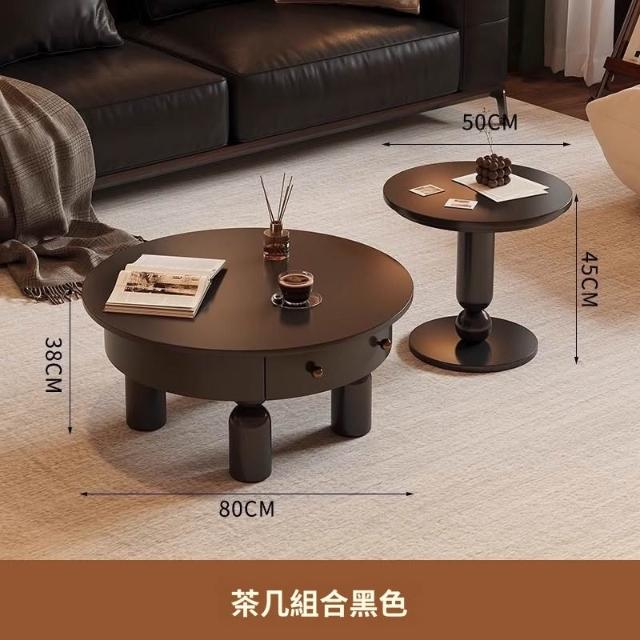 中古侘寂風實木茶幾客廳家用小戶型圓形茶幾組閤設計師款複古茶幾