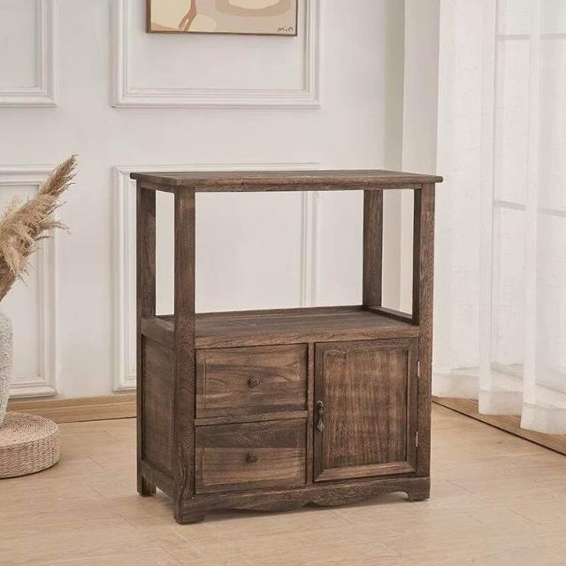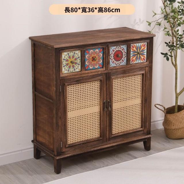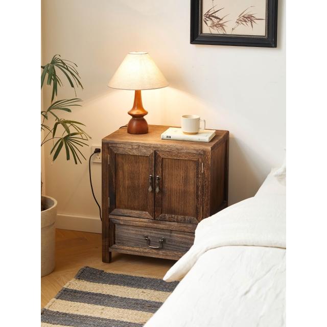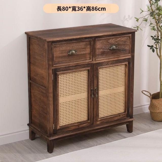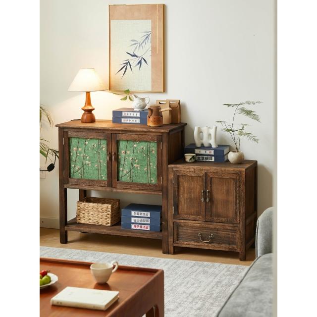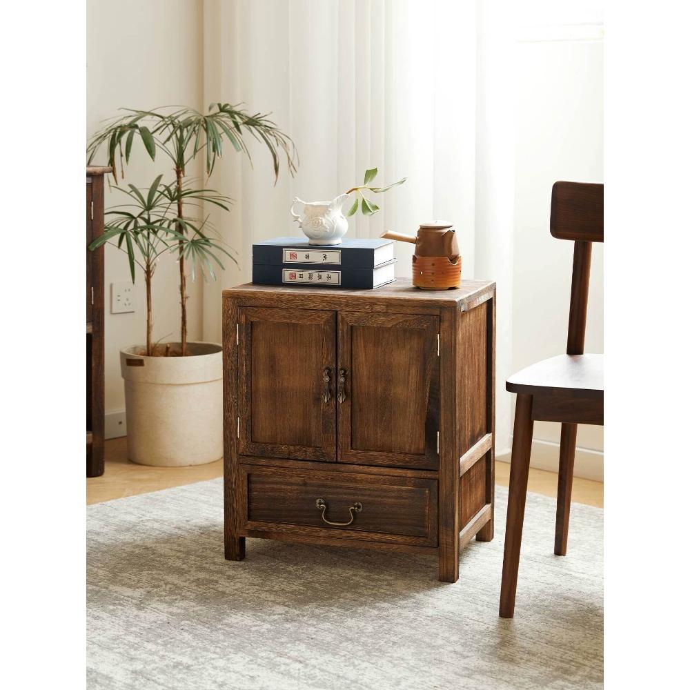 實木邊幾角幾置物櫃復古做舊雙門收納櫃客廳家用小櫃子茶室茶水櫃