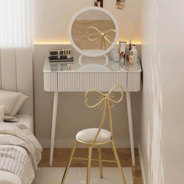 簡約白色梳妝台臥室簡約現代小戶型化妝台奶油風療癒上妝桌