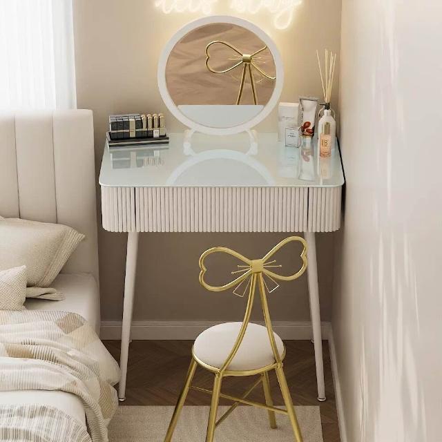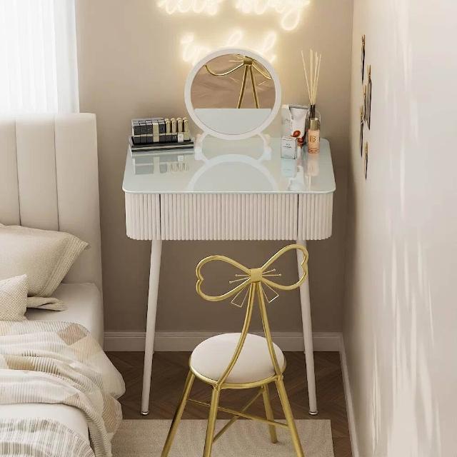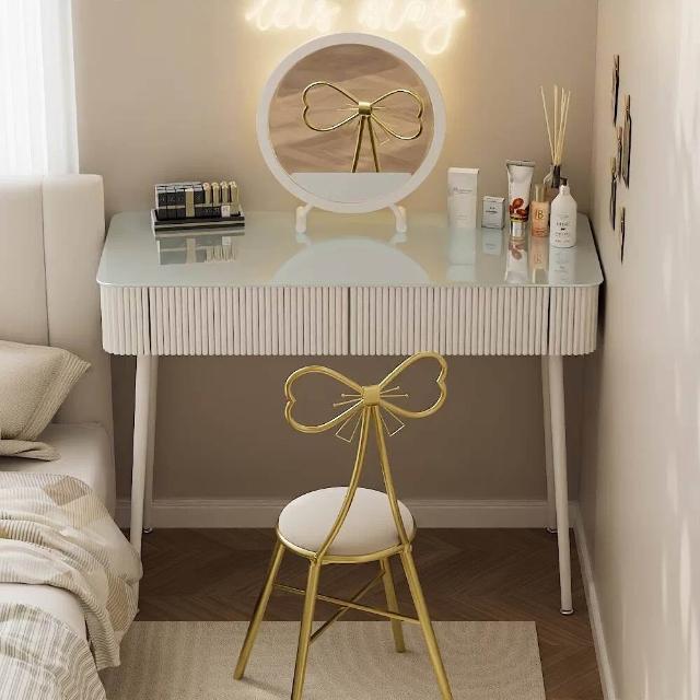 簡約白色梳妝台臥室簡約現代小戶型化妝台奶油風療癒上妝桌