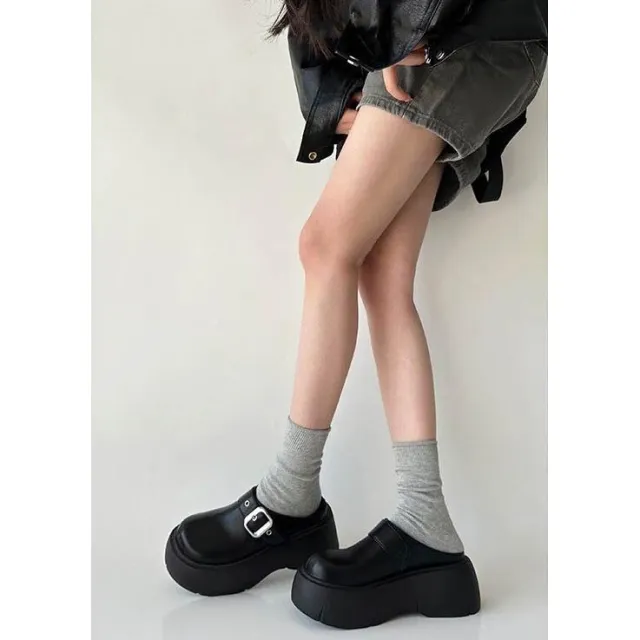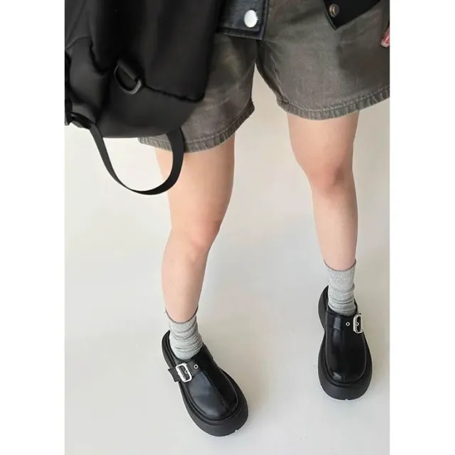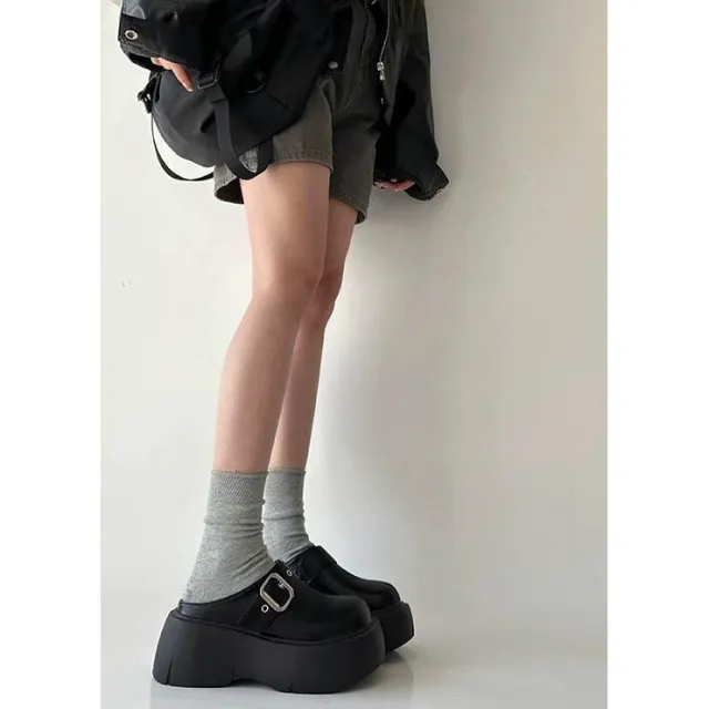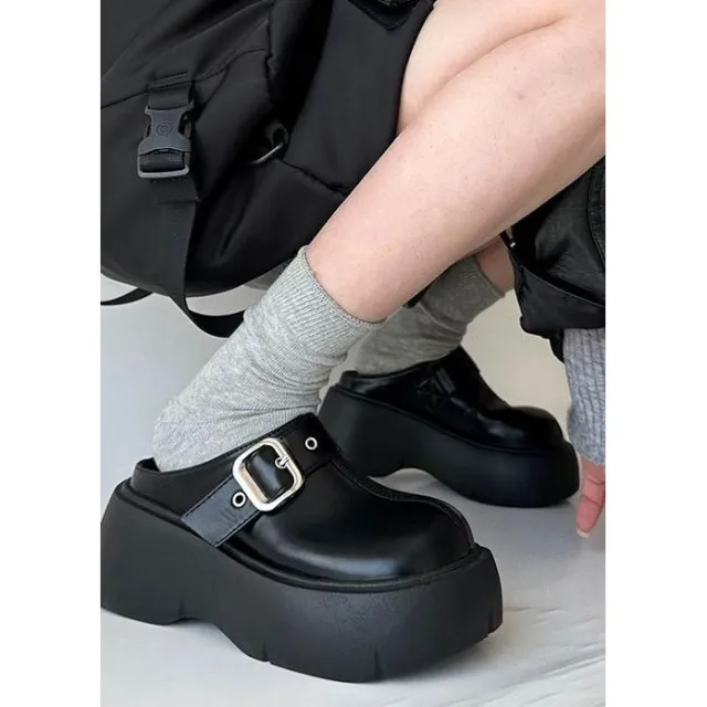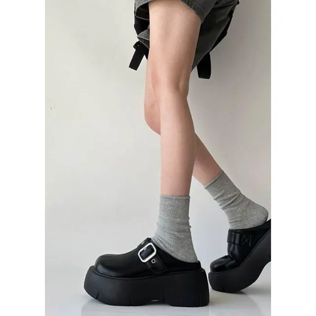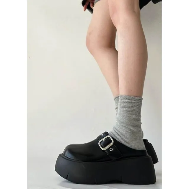 MUU長腿認證 銀扣皮革 厚底鞋 懶人半拖鞋(1color)./