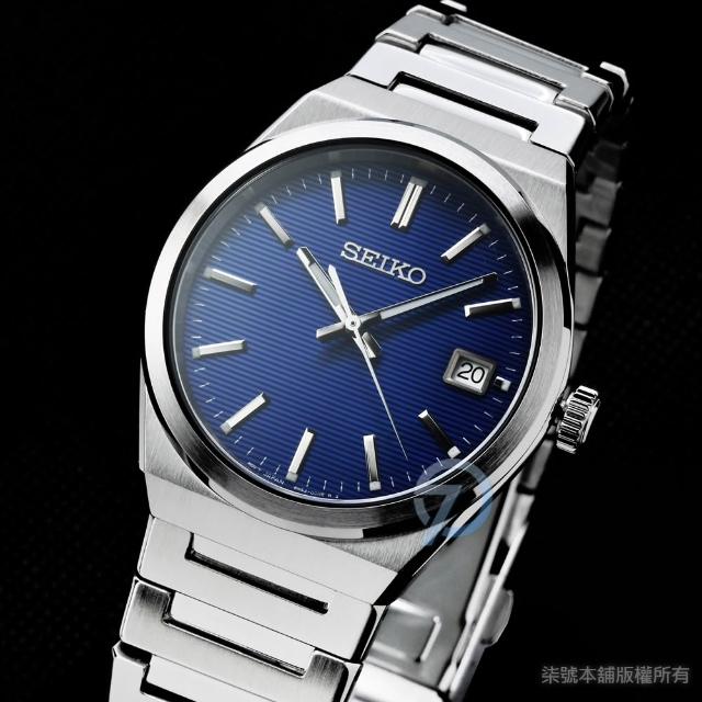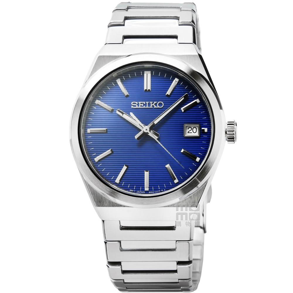 SEIKO 精工【柒號本舖】SEIKO精工藍寶石復古石英鋼帶男錶-藍面 / SUR555P1