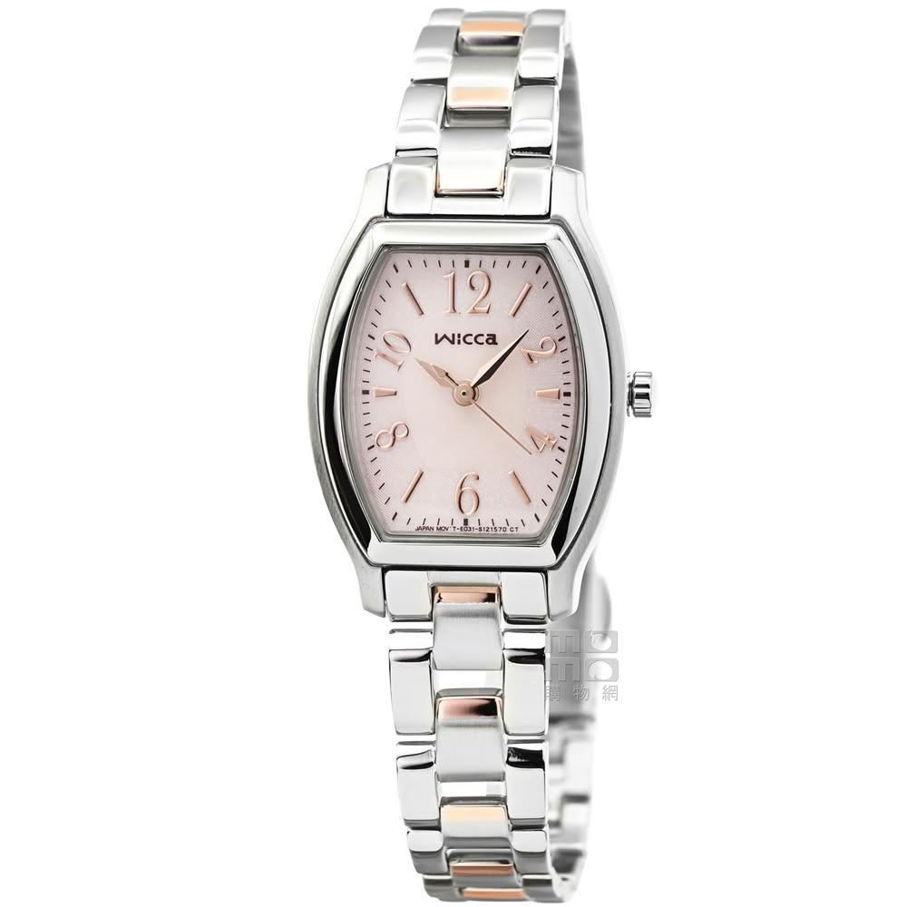 CITIZEN 星辰【柒號本舖】CITIZEN星辰 WICCA 光動能酒桶型石英鋼帶女錶-粉色 / KH8-730-93