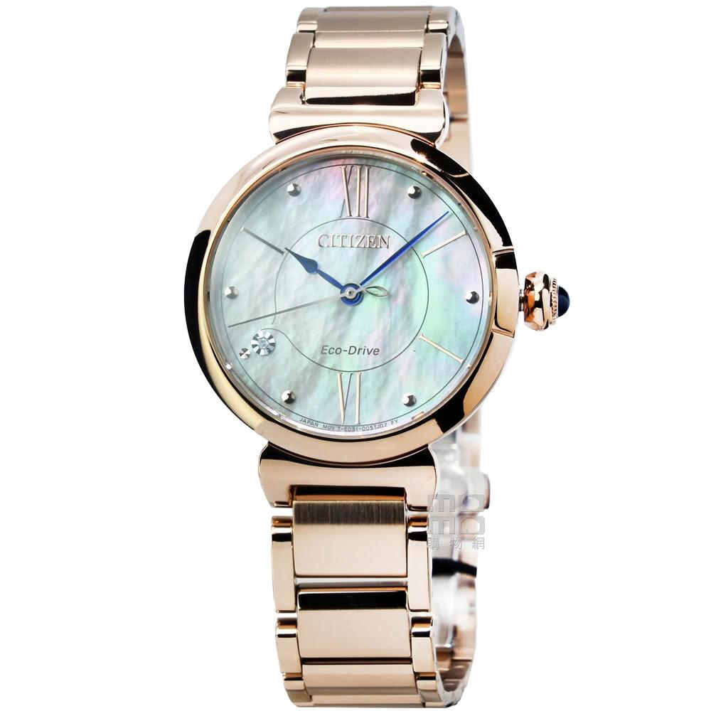 CITIZEN 星辰【柒號本舖】CITIZEN星辰ECO-DRIVE光動能L系列時尚女錶-貝殼面 / EM1073-85Y
