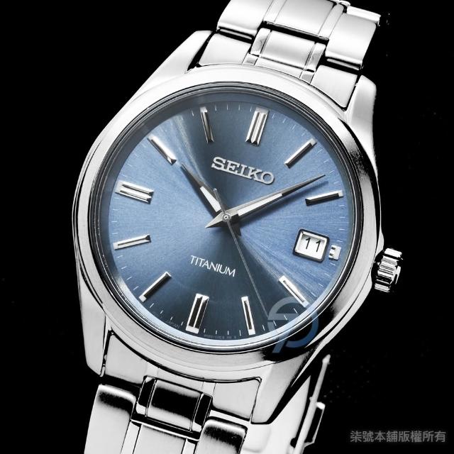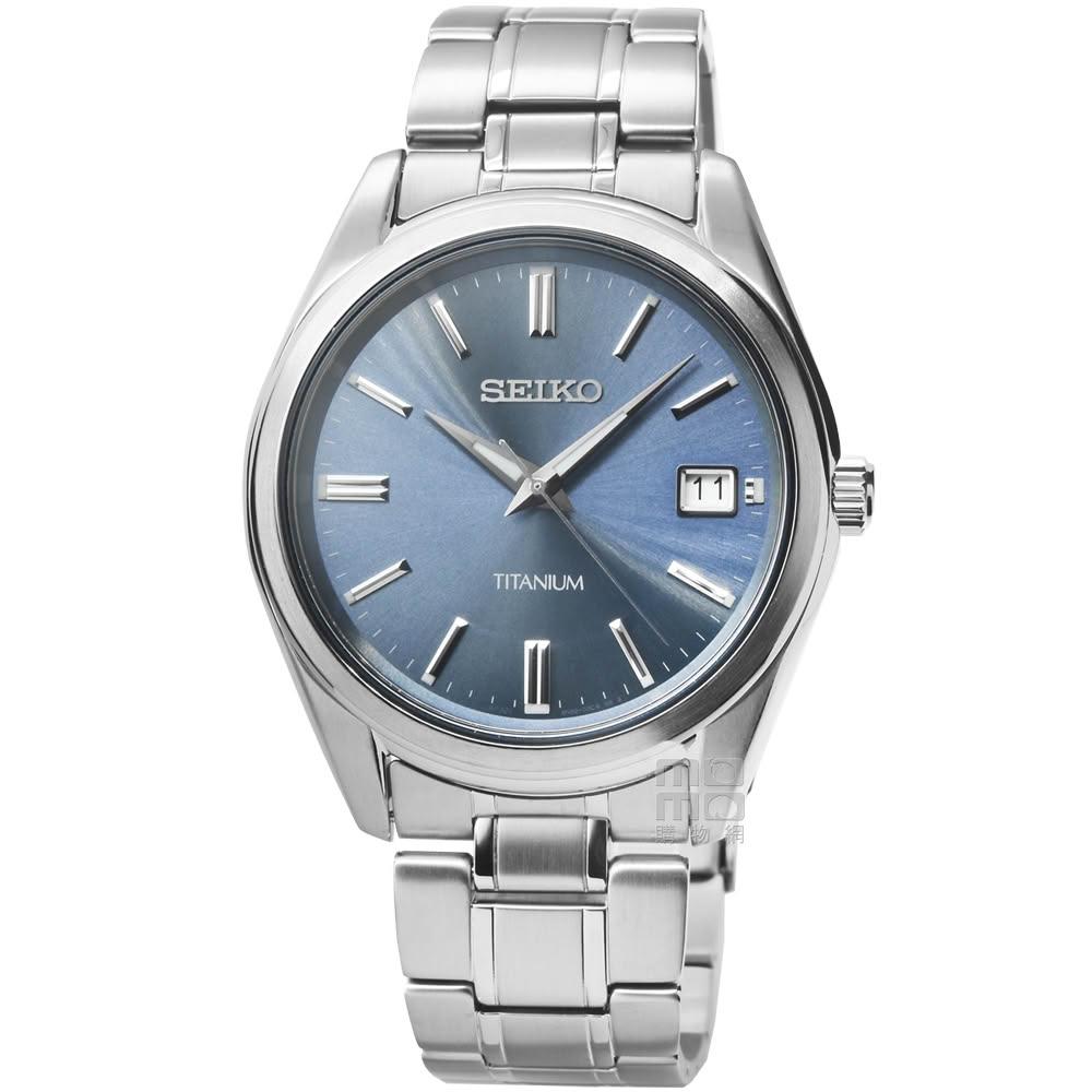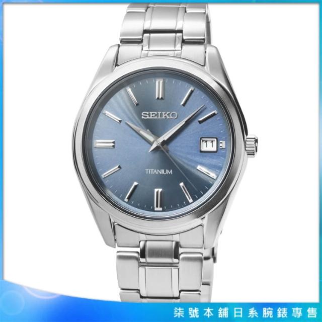 SEIKO 精工【柒號本舖】SEIKO精工藍寶石鈦金屬男錶-金屬藍 / SUR371P1