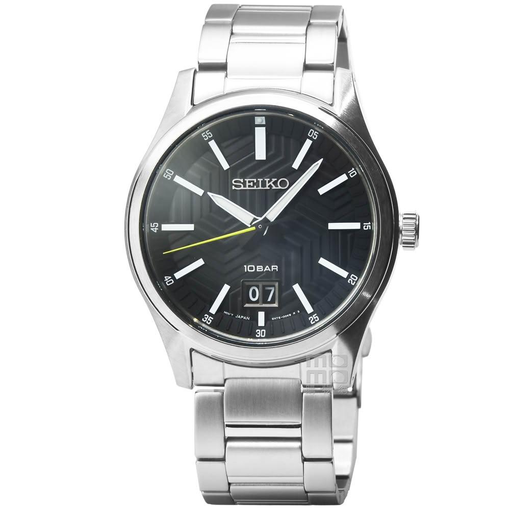 SEIKO 精工【柒號本舖】SEIKO精工藍寶石石英鋼帶男錶-黑 / SUR535P1