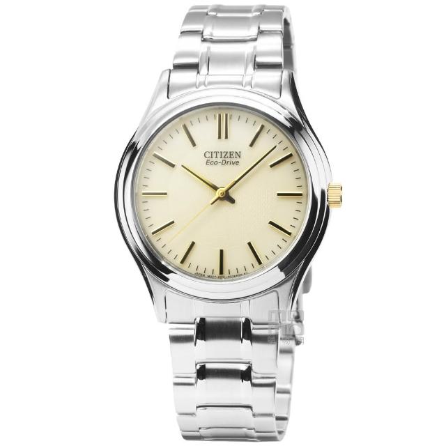 CITIZEN 星辰【柒號本舖】CITIZEN星辰ECO-DRIVE光動能中性石英錶-淡金 / FRB59-2452