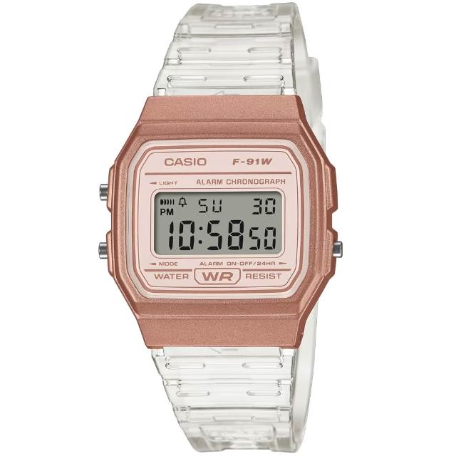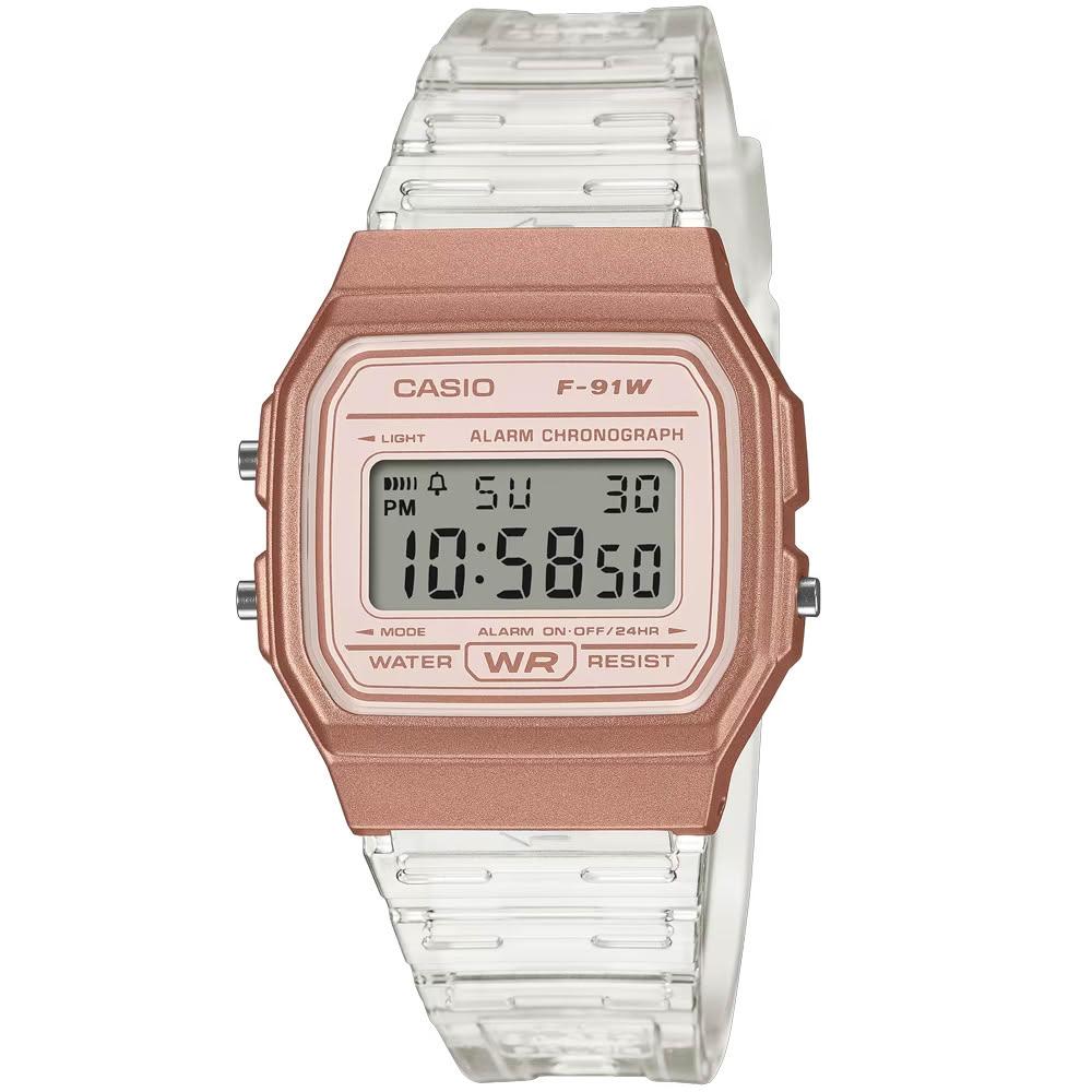CASIO 卡西歐【柒號本舖】CASIO 日系卡西歐鬧鈴電子錶-果凍金 / F-91WS-7A3 (原廠公司貨)